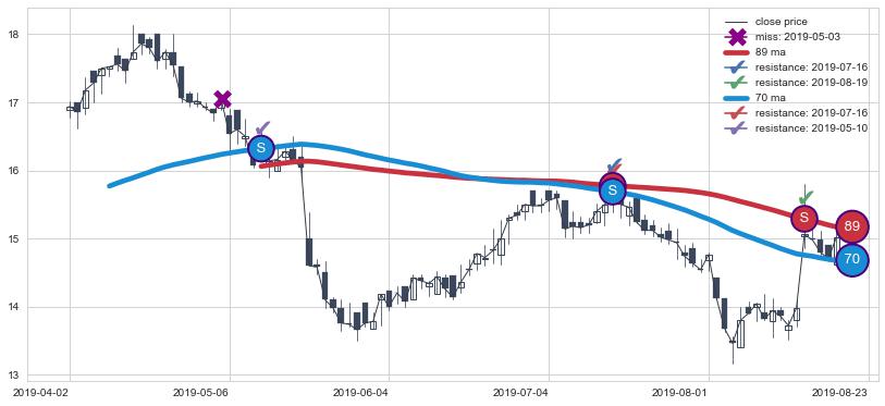 下跌趋势2019-04-02-2019-08-23,均线89, 70确认关键阻力3处