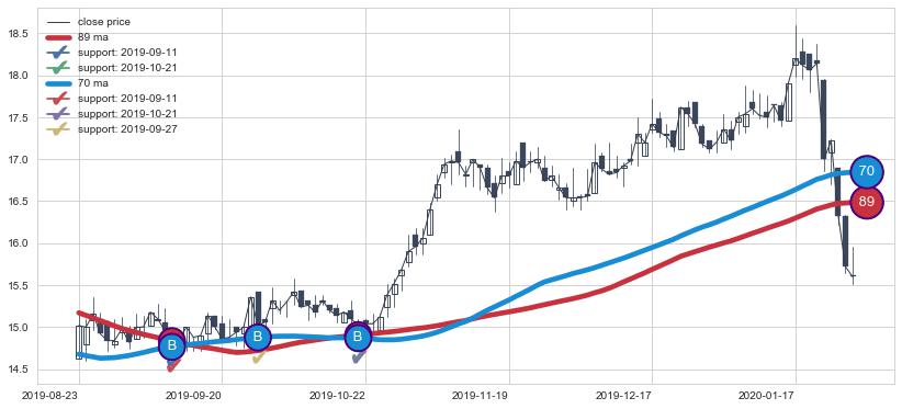上涨趋势2019-08-23-2020-01-31,均线89, 70确认关键支撑3处