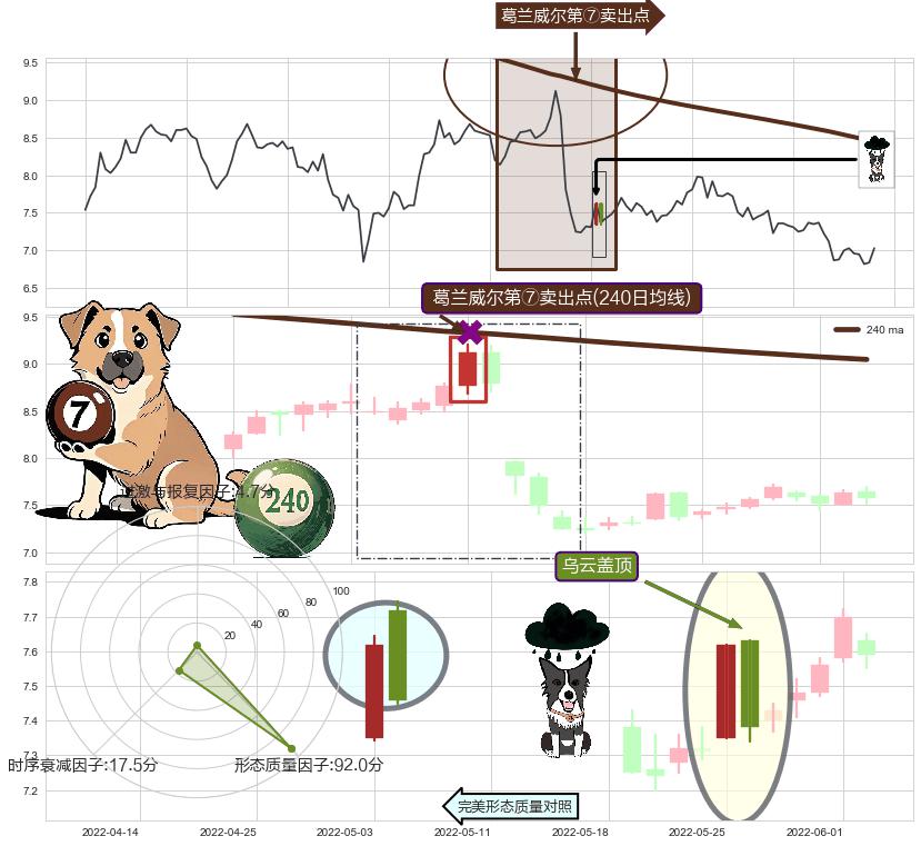 | 7 🅚:上探下跌 ➕ 🎢:【乌云密布】卖出点均线组合卖出点信号形成后,猜想后续下行持续,下跌加速(趋势跟踪) ☞ 看空信号 ⇥ 【均线】交织【🅚线】⇥ 综合量化分数: 36 | > |