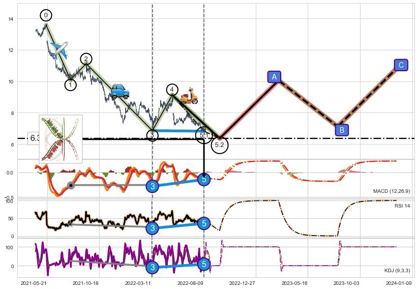 ➢ 5.2: 预测第5浪最终位置(2022-09-21, 6.36)