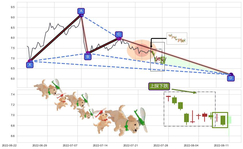 ➣ D点拟合预测价格6.20,距离最后交易收盘价格7.03相差 -11.85%