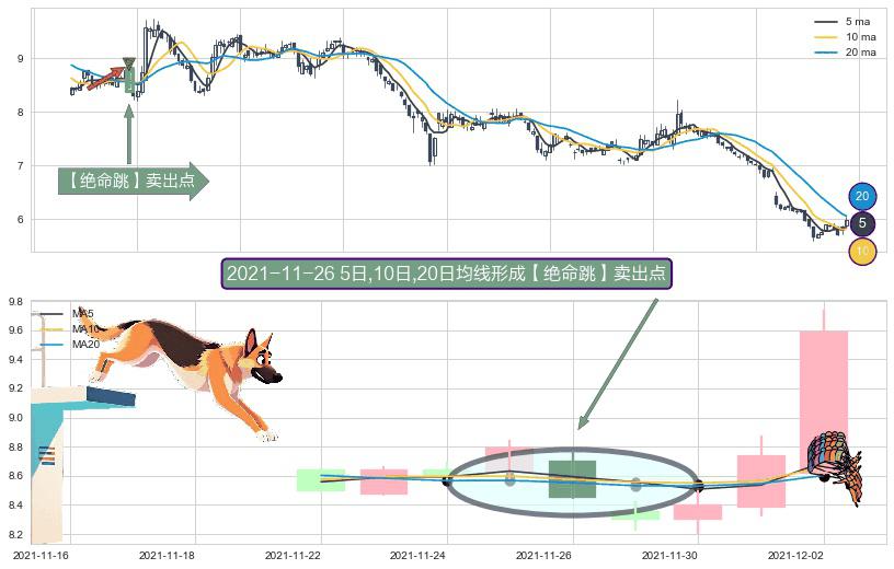 形态多维评估: ⚀ 2021-11-26日显现 5日-10日-20日均线 【绝命跳】卖出点 看空信号,后市看跌,卖出