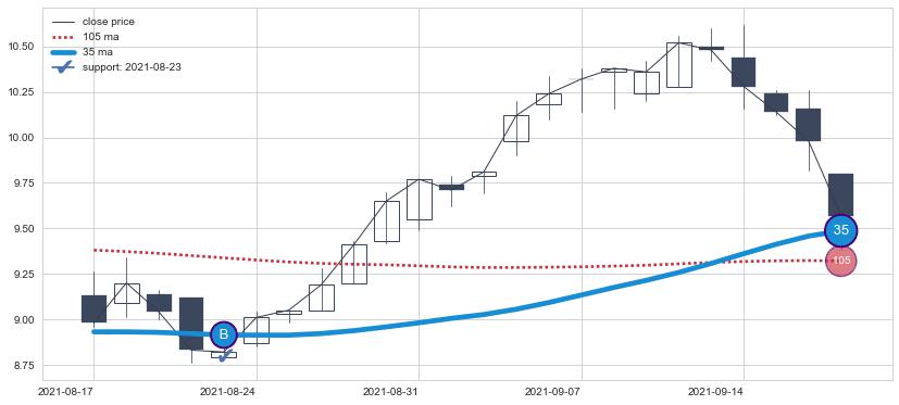 上涨趋势2021-08-17-2021-09-17,均线35确认关键支撑1处