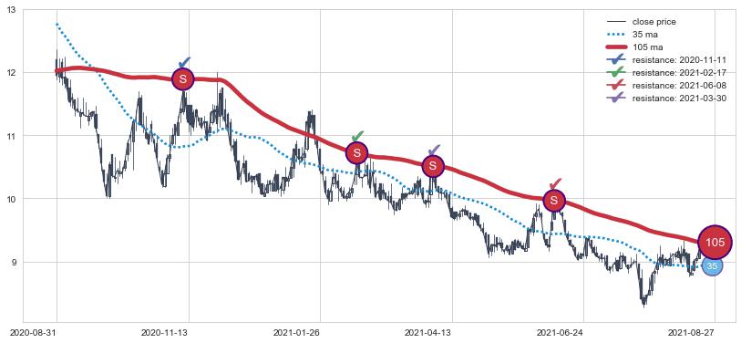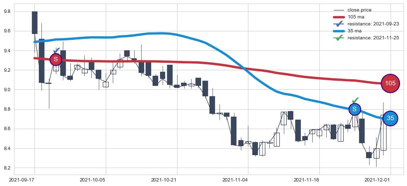 下跌趋势2021-09-17-2021-12-01,均线105, 35确认关键阻力2处