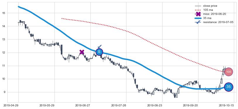下跌趋势2019-04-29-2019-10-15,均线35确认关键阻力1处