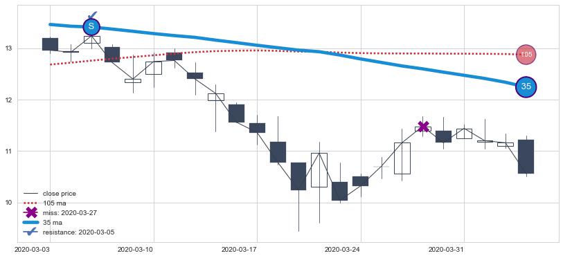 下跌趋势2020-03-03-2020-04-03,均线35确认关键阻力1处