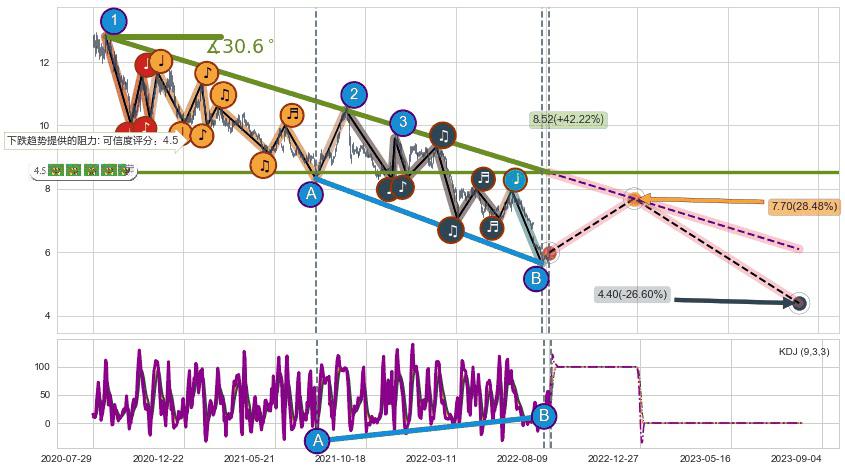 ➣ 预测:2023-09-04,【继续下探】稳定目前下跌趋势的前提下,预测价格:4.40