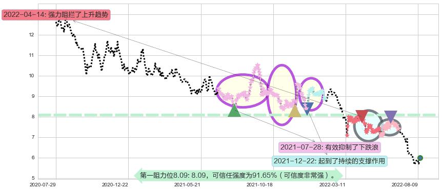 ♘ 阻力价格位8.09,可信任强度91.65%,距离最后交易2022-08-12形成的收盘价格5.99相差 +35.08%