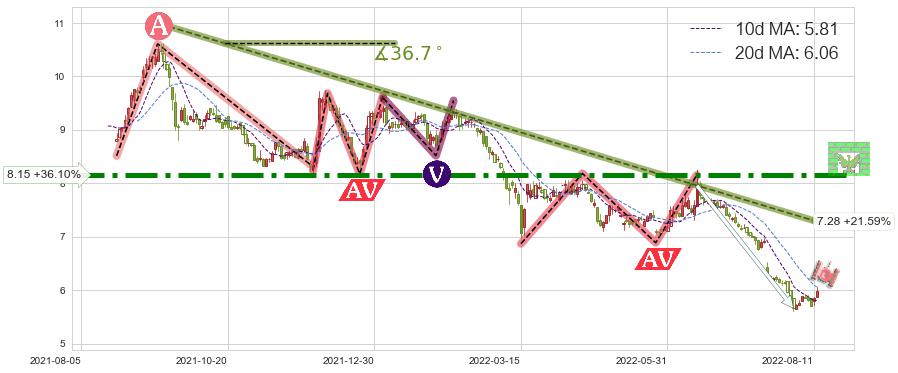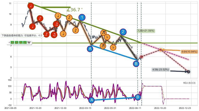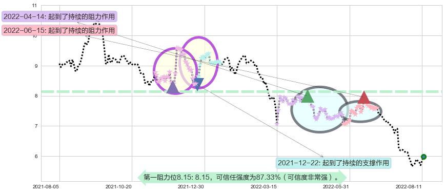 ♘ 阻力价格位8.15,可信任强度87.33%,距离最后交易2022-08-12形成的收盘价格5.99相差 +36.10%