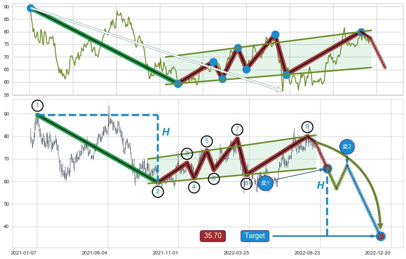 ➣ 最小中继整理跌幅→𝐇: 30.05 (𝐇旗杆的长度:旗杆起点→顶点)