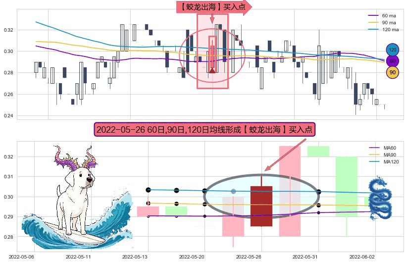 ⚀ 2022-05-26日显现 60日-90日-120日均线 【蛟龙出海】买入点 看多信号,后市看涨,买入