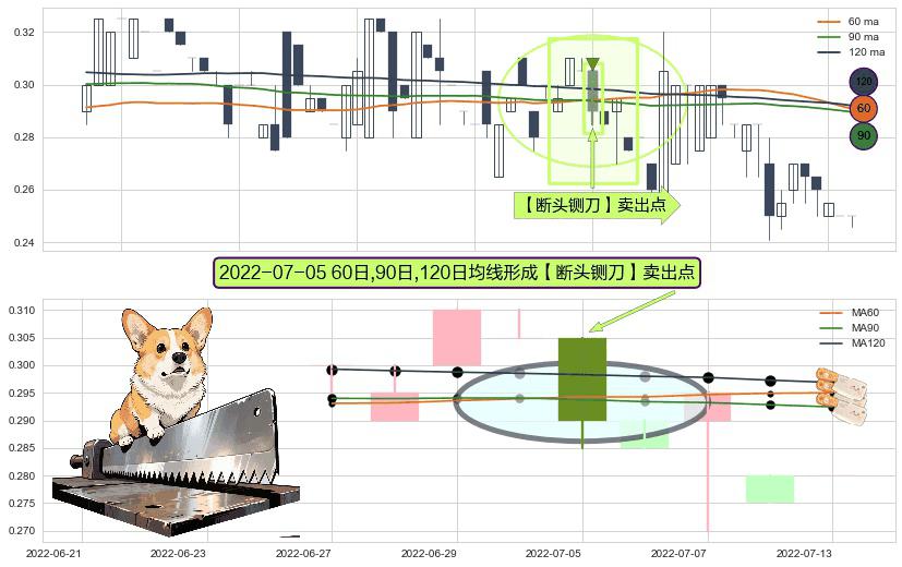 ⚀ 2022-07-05日显现 60日-90日-120日均线 【断头铡刀】卖出点 看空信号,后市看跌,卖出