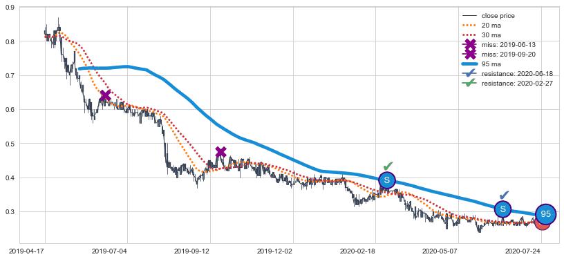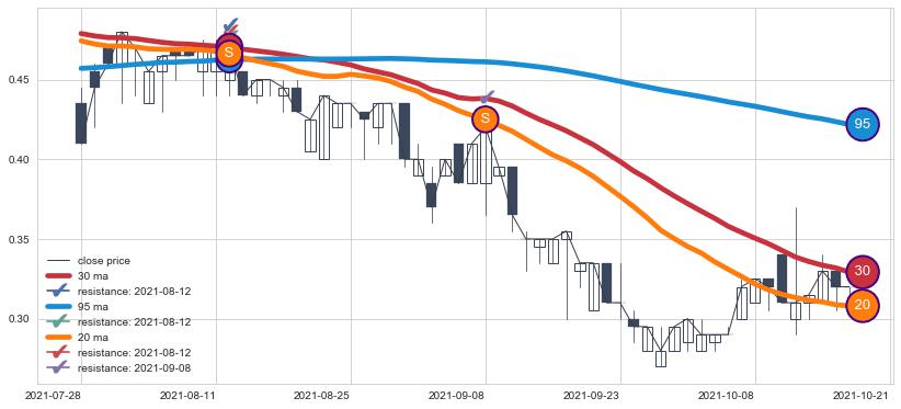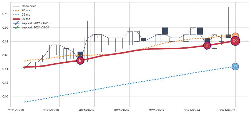 ⚁ MA60和MA90走势平行,且始终保持在短距离内,MA120始终在短中期均线上方,与短中期均线保持一定的距离,微微下行