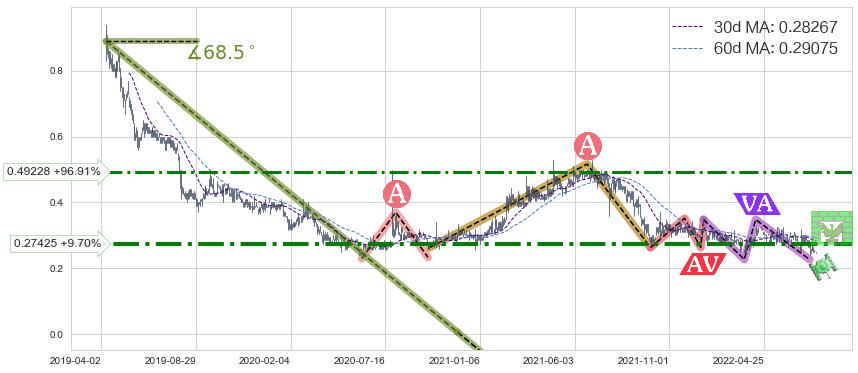♘ 阻力价格位0.49228,可信任强度65.97%,距离最后交易2022-08-11形成的收盘价格0.250000相差 +96.91%