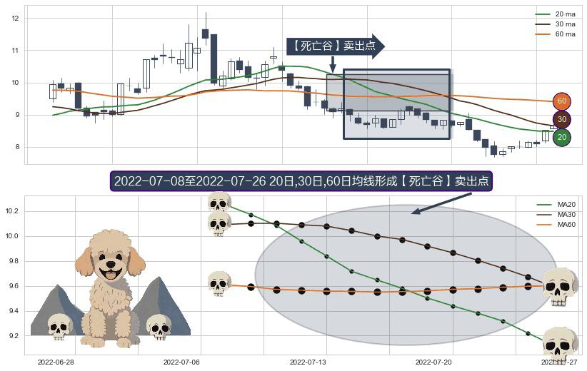 ⚀ 2022-07-11-日至2022-07-26-日显现 20日-30日-60日均线 【死亡谷】卖出点 看空信号,后市看跌,卖出