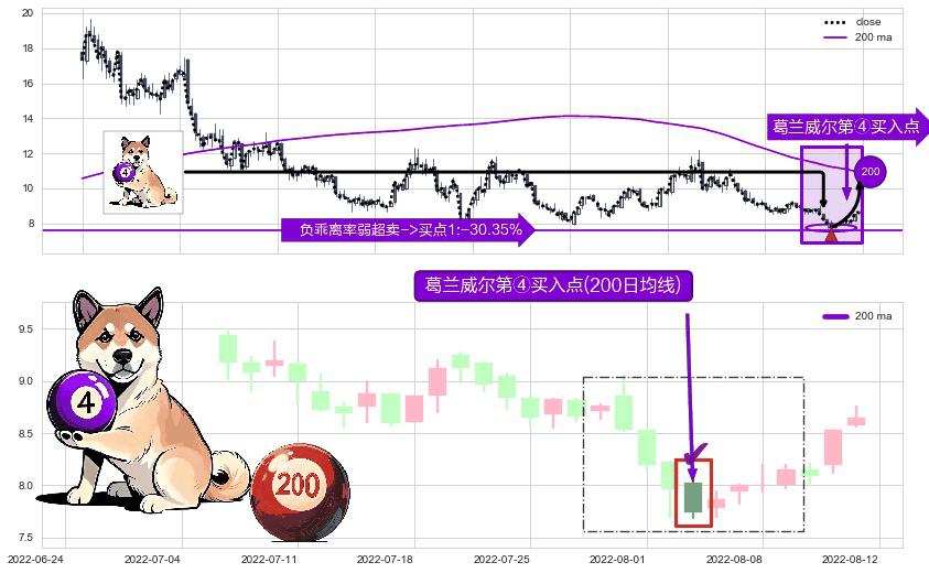 ⚀ 2022-08-03-日显现 葛兰威尔均线 200日均线 第④买入点 下降趋势均值回复的短线反弹信号,后市看涨,买进信号