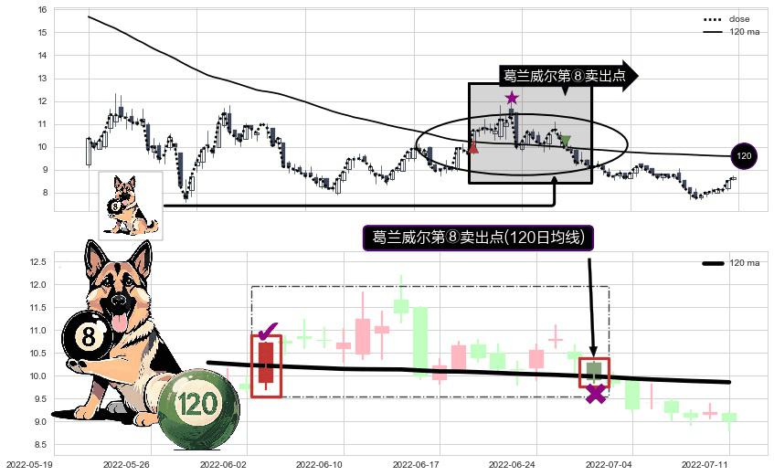 ⚀ 2022-06-29-日显现 葛兰威尔均线 120日均线 第⑧卖出点 下降趋势的中继信号,后市看跌,卖出信号