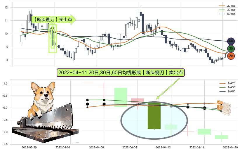 ⚀ 2022-04-11日显现 20日-30日-60日均线 【断头铡刀】卖出点 看空信号,后市看跌,卖出