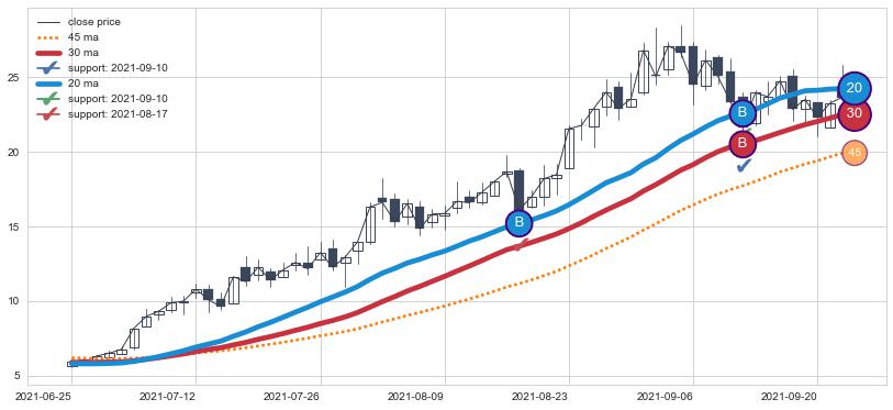 ➢ 发现最优均线组合: 20 , 30 , 45