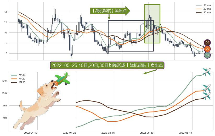 ⚀ 2022-04-28日-2022-06-17日显现 10日-20日-30日均线 【战机起航】卖出点 看空信号,后市看跌,卖出