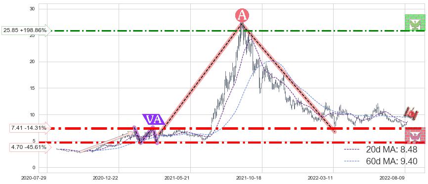 ♘ 阻力价格位25.85,可信任强度57.40%,距离最后交易2022-08-12形成的收盘价格8.65相差 +198.86%