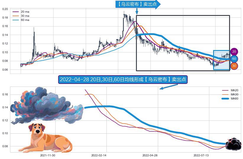 形态多维评估: ⚀ 2022-01-11日-2022-08-11日显现 20日-30日-60日均线 【乌云密布】卖出点 看空信号,后市看跌,卖出