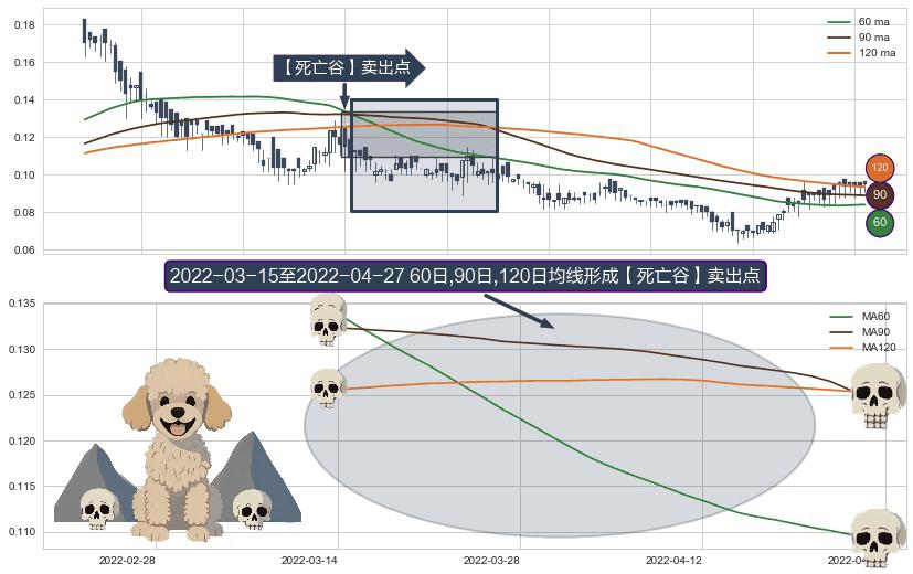 形态多维评估: ⚀ 2022-03-16-日至2022-04-27-日显现 60日-90日-120日均线 【死亡谷】卖出点 看空信号,后市看跌,卖出