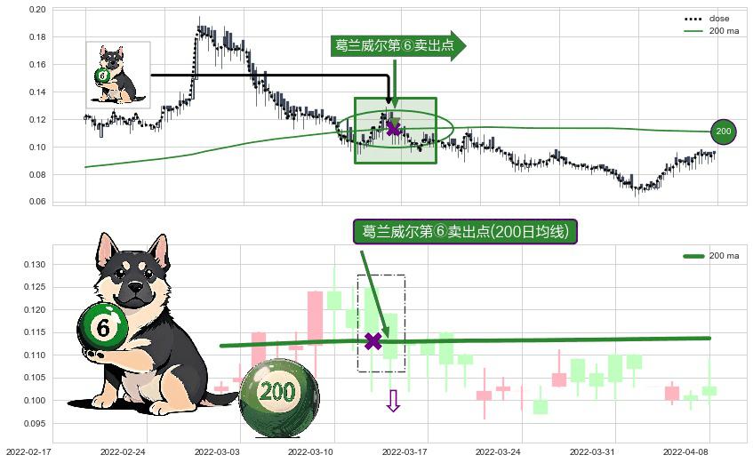 形态多维评估: ⚀ 2022-03-15-日显现 葛兰威尔均线 200日均线 第⑥卖出点 走势反转见顶信号,后市看跌,卖出信号