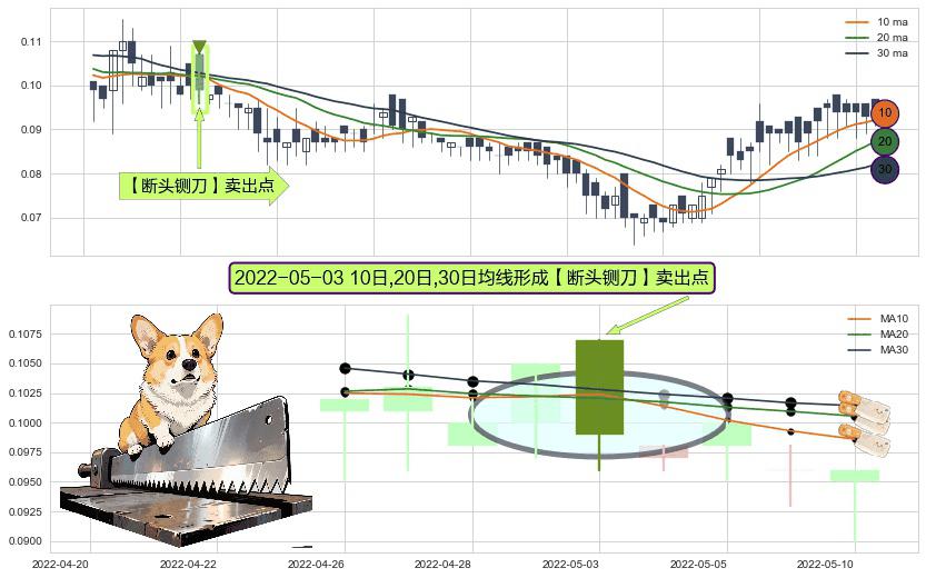 形态多维评估: ⚀ 2022-05-03日显现 10日-20日-30日均线 【断头铡刀】卖出点 看空信号,后市看跌,卖出