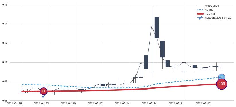上涨趋势2021-04-16-2021-06-09,均线105确认关键支撑1处