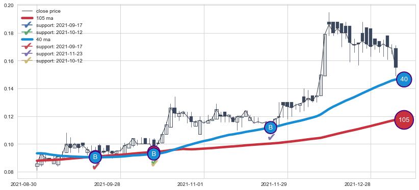 上涨趋势2021-08-30-2022-01-05,均线40, 105确认关键支撑3处