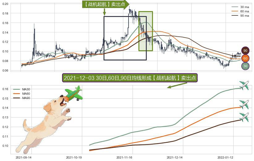 形态多维评估: ⚀ 2021-10-22日-2022-01-17日显现 30日-60日-90日均线 【战机起航】卖出点 看空信号,后市看跌,卖出
