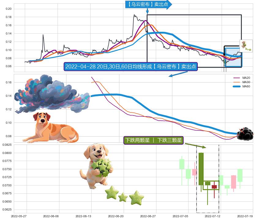 | 2 🅚:乌云盖顶 ➕ 🎢:【乌云密布】卖出点均线组合卖出点信号形成后,猜想后续下行持续,下跌加速(趋势跟踪) ☞ 看空信号 ⇥ 【均线】交织【🅚线】⇥ 综合量化分数: 49 | > |