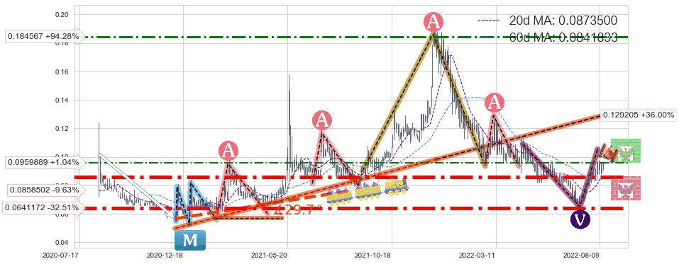 ♘ 阻力价格位0.184567,可信任强度56.95%,距离最后交易2022-08-12形成的收盘价格0.0950000相差 +94.28%