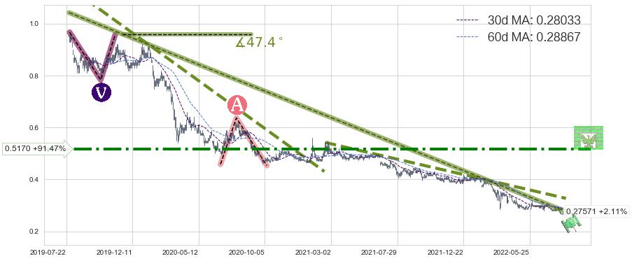 🦴 长线均值回复组合短线趋势跟踪[强阻力信号]2019-07-26-2022-08-12下跌趋势依然成立(下跌趋势跟踪依然存在),短线价格略微上行反弹(均值回复猜想),即将接近下跌趋势提供的未破位阻力价格:0.27571。