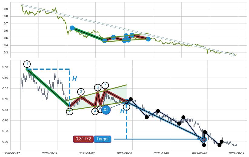 ➣ 最小中继整理跌幅→𝐇: 0.175000 (𝐇旗杆的长度:旗杆起点→顶点)