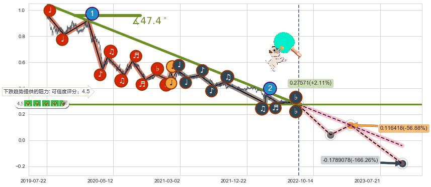 ♘ 在最后的下跌阶段2019-07-26至2022-08-12,存在 持续未破位的阻力位 ,阻力价格0.27571,可信任强度88.70%,其距离最后价格0.27000相差 +2.11%