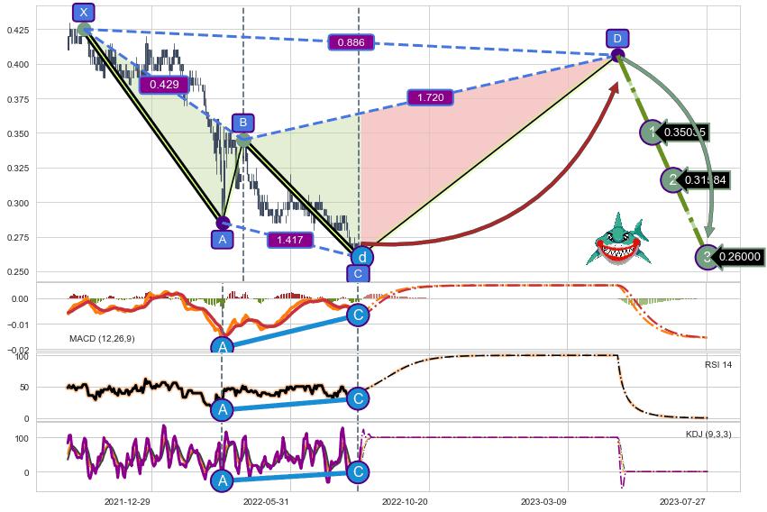 ➣ D点拟合预测价格0.40619,距离最后交易收盘价格0.27000相差 +50.44%