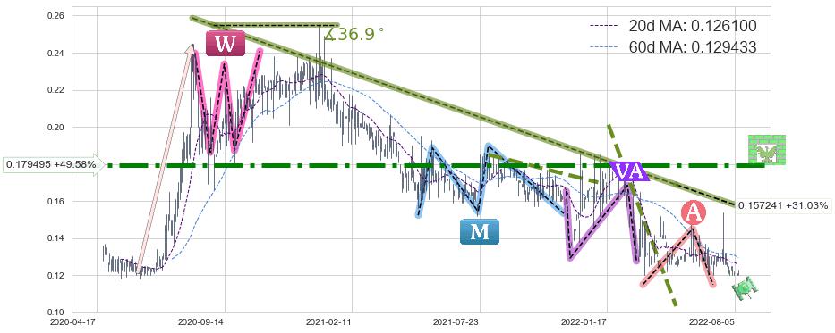 ➣ 【已确认突破】最后价格:0.120000与最小【整理】第一目标价格→(2022-08-18: 0.0948750 )相较: 下跌空间【中等】