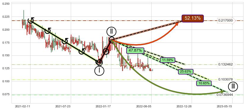 ➣ 循环浪继续向下【平均值】位置(2023-02-22, 0.103078),匹配聚类样本比例53.54%, 可能性概率25.63%