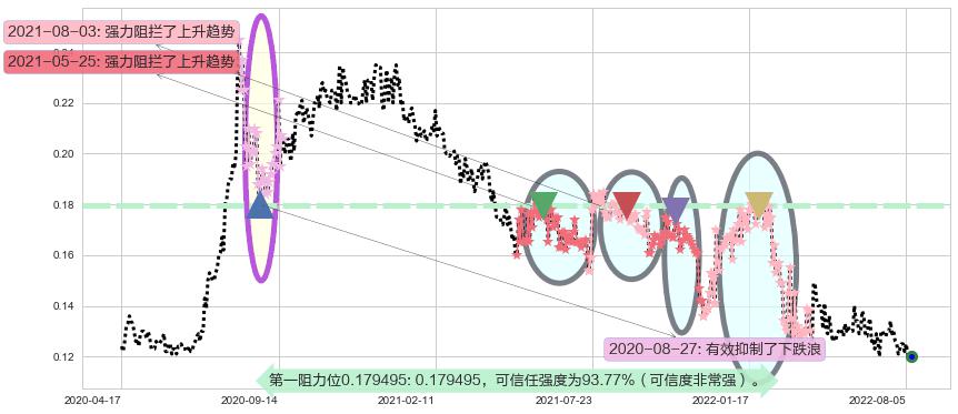 ♘ 阻力价格位0.179495,可信任强度93.77%,距离最后交易2022-08-11形成的收盘价格0.120000相差 +49.58%