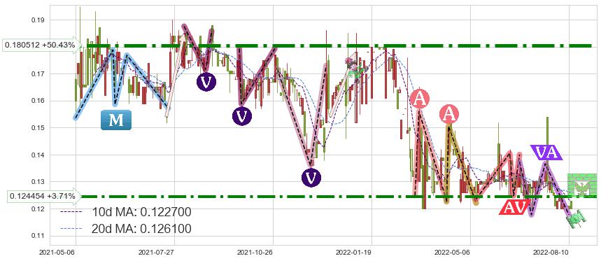 ♘ 阻力价格位0.124454,可信任强度70.50%,距离最后交易2022-08-11形成的收盘价格0.120000相差 +3.71%