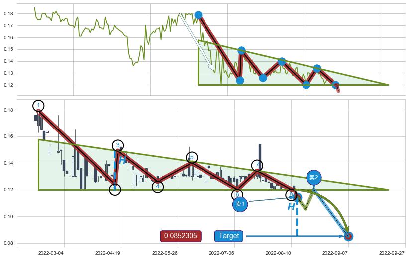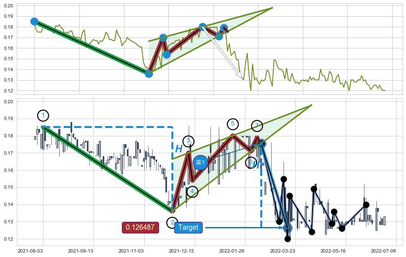 ➢ 最小中继整理跌幅→𝐇: 0.0490000 (𝐇楔型旗杆的长度:楔型起点→顶点)