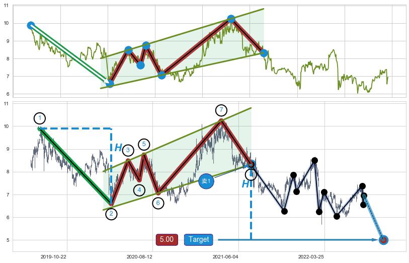 ➣ 最小中继整理跌幅→𝐇: 3.310 (𝐇旗杆的长度:旗杆起点→顶点)