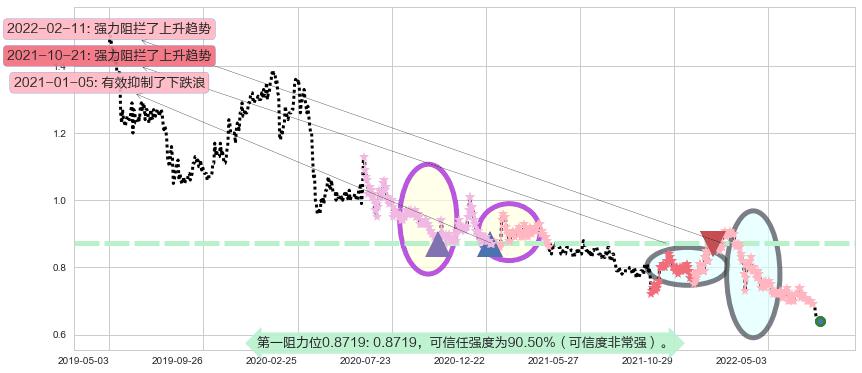 ♘ 阻力价格位0.8719,可信任强度90.50%,距离最后交易2022-08-11形成的收盘价格0.6400相差 +36.24%