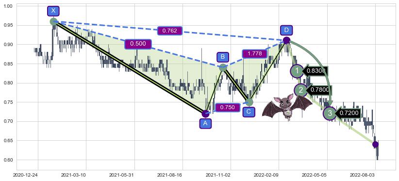 ➣ 已完成【蝙蝠】形态起点X: 2021-01-19, 终点D: 2022-02-21, 共243交易日