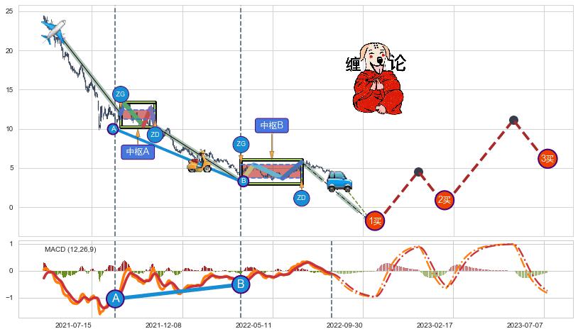 ➣ 【未完成】缠论 起点:2021-05-10, 完成第1中枢A,完成第2中枢B,到达2022-08-12