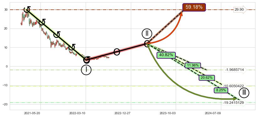 ➣ 大趋势循环浪继续向下概率40.82%