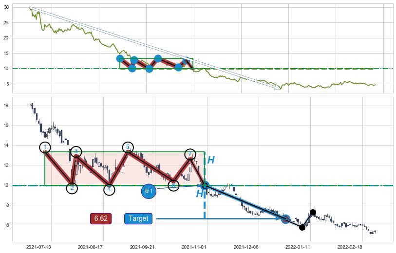 ➢ 【已达成】最小【整理】第一目标价格→(2021-12-23: 6.62 ), 后续继续【整理】下跌动力微弱,下跌较小