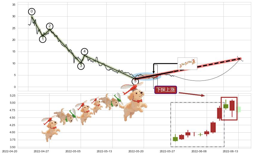 ➢ 最后的下跌趋势2021-02-17至2022-04-01:存在突破迹象,后续小反弹或者反转上涨
